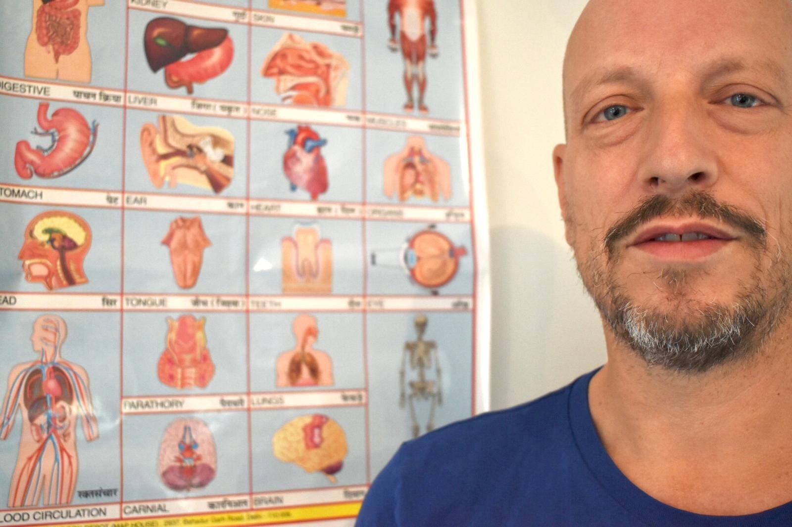 Dr. Hermann Traitteur grew up in the southern German town of Munich, where in the late 1980s, he first came into contact with Iyengar Yoga. After the fall of the Berlin Wall, he moved to Berlin in 1990, where he studied medicine and began his medical career at an orthopedic clinic. When he was studying medicine in Berlin, he also participated in a Teacher Training Program at the Iyengar Yoga Institute of San Francisco. Following his certification with the Iyengar Yoga National Association of the United States (IYNAUS), he furthered his education through annual stays at the Ramamani Iyengar Memorial Yoga Institute (RIMYI) in Pune, India.