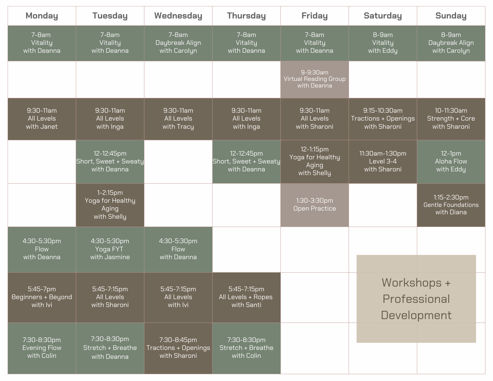 Due to a change in Apple’s iOS guidelines, Mindbody is presently unable to display online class registration in the Mindbody app. Soooo... if you're an Apple user, sign up for your online classes through this schedule page.